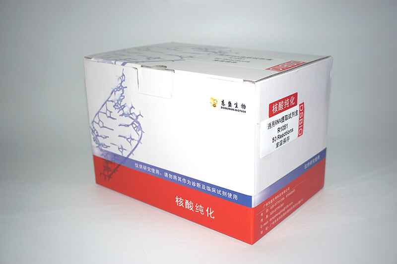 通用RNA提取試劑盒是經過改進開發的新一代產品,提高了裂解液的裂解能力和提取的靈敏度,通過在特定適宜的條件下特異、可逆地結合RNA,而各種蛋白質和其他雜質均可被去除掉,同時改進的硅基質膜增強了對RNA的吸附能力,得到的RNA純度更好,質量更高。該試劑盒可從各種細胞或組織中快速提取總RNA,每個吸附柱每次可處理50–100 mg?組織或5×106?細胞,可同時處理大量不同樣(yang)品,一個小時內即可完成(cheng)反應。提取的總RNA沒(mei)有DNA和(he)蛋白的污染(ran),可用于(yu)Northern blot、Dot blot、polyA?篩選、體外翻譯(yi)、RNase保護分析和(he)分子克(ke)隆(long)等(deng)。